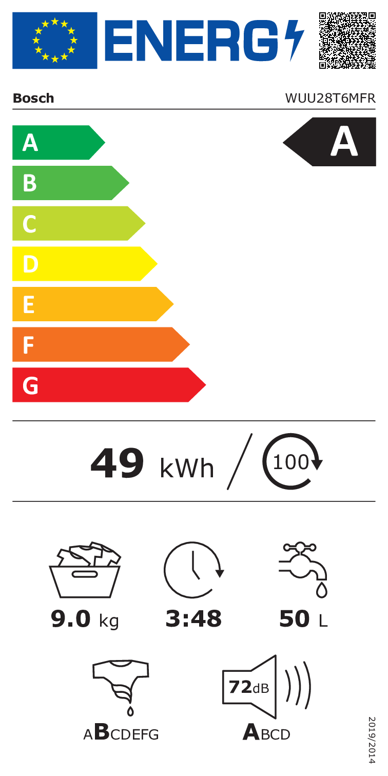 - Consommation d’énergie : 49 kWh/100 cycles